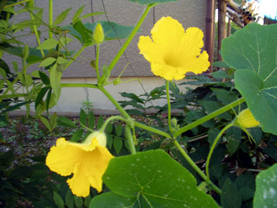 今年もオヤジさんが、庭にカボチャとゴーヤを植えた。