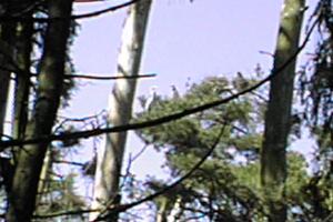 1本の木に数個の巣があり雛が餌を待っています。