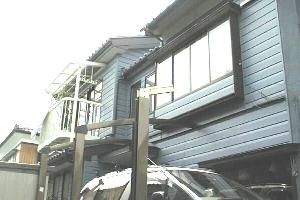 写真上右に写っている部分は旧建屋で、写真上左に写っている白いバルコニーがある辺りから後ろが新築した部分です。