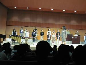 1999/11/07 今日は市民文化会館で「新発田市 小・中学校 音楽祭」があって悟が出ました。 小学校の参加数は10校で、部活の発表会なので学校によって合唱や合奏だったり、楽器も様々でした。 悟の小学校は楽器合奏で、「となりのトトロ」と「風をよぶ丘」を演奏しました。 学校によって取り組み方の違いなのか、かなりレベルに差があるようです。(^_^;) 私の趣味的には、歌声が心に響くという感じで合唱が良かったなぁ。